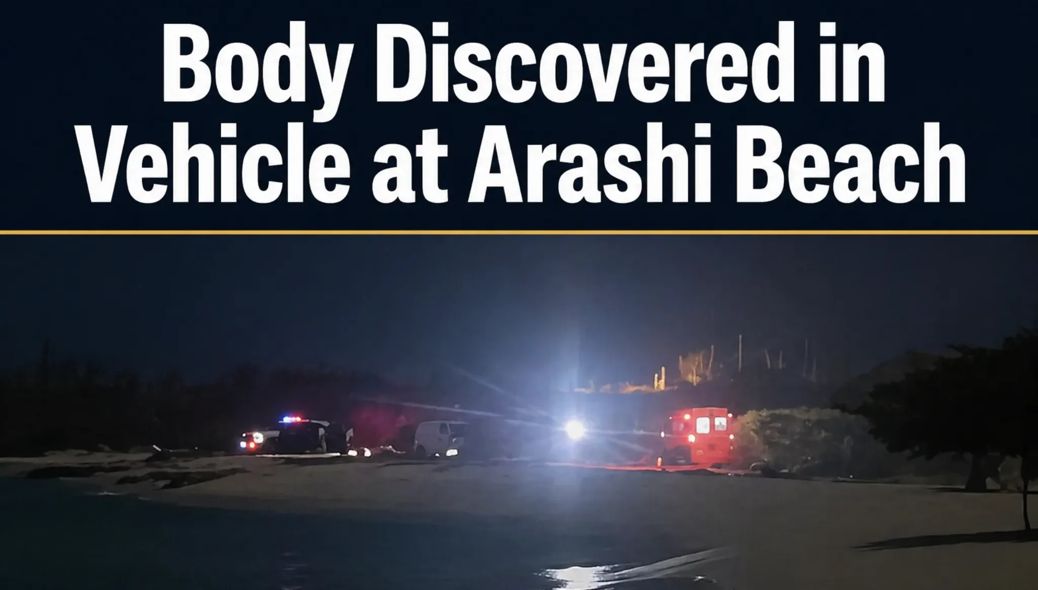 Authorities in Aruba are investigating the discovery of a body found in a vehicle at Arashi beach. On Monday night around 10:00 PM, a vehicle parked north of the main parking area was discovered containing a person who showed no signs of life. Police and medical personnel were dispatched to the scene immediately. The deceased has been identified as a male individual. An investigation is underway to determine the cause of death and the circumstances surrounding the incident. Officials have secured the area as part of standard procedure.