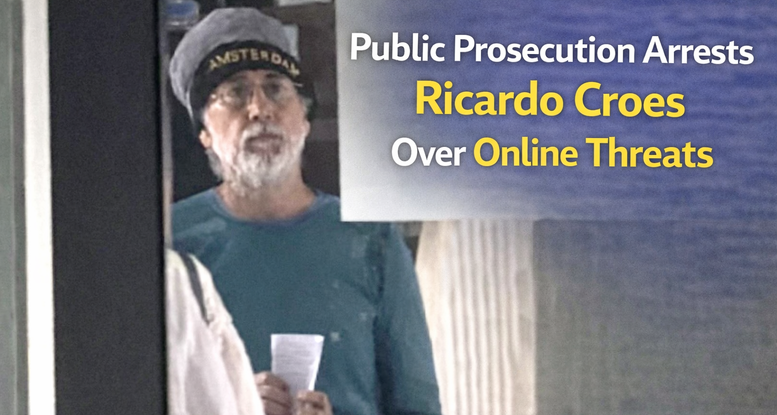 On Friday evening, Croes was seen leaving the Recherche office in Wayaca in handcuffs. Family members were present at the location. He had reportedly been summoned earlier that day and was detained upon arrival. Two other individuals have also been detained in connection with online statements about the case.