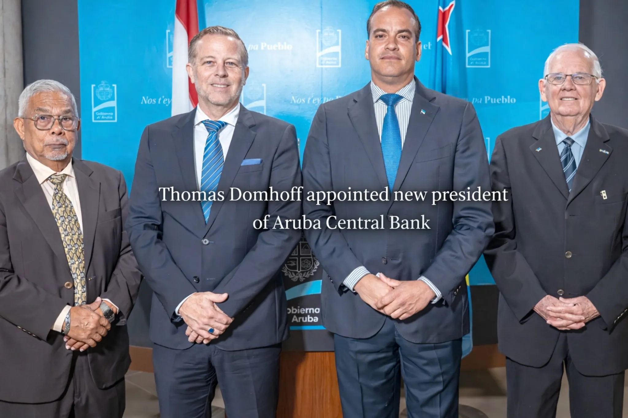 ORANJESTAD (AAN): Minister of Finance Geoffrey Wever announced the appointment of Thomas Domhoff as the new President of the Aruba Central Bank (CBA). This appointment follows a rigorous and extensive process managed by the Board of Commissioners of the Central Bank, led by Mr. Arie Swaen.