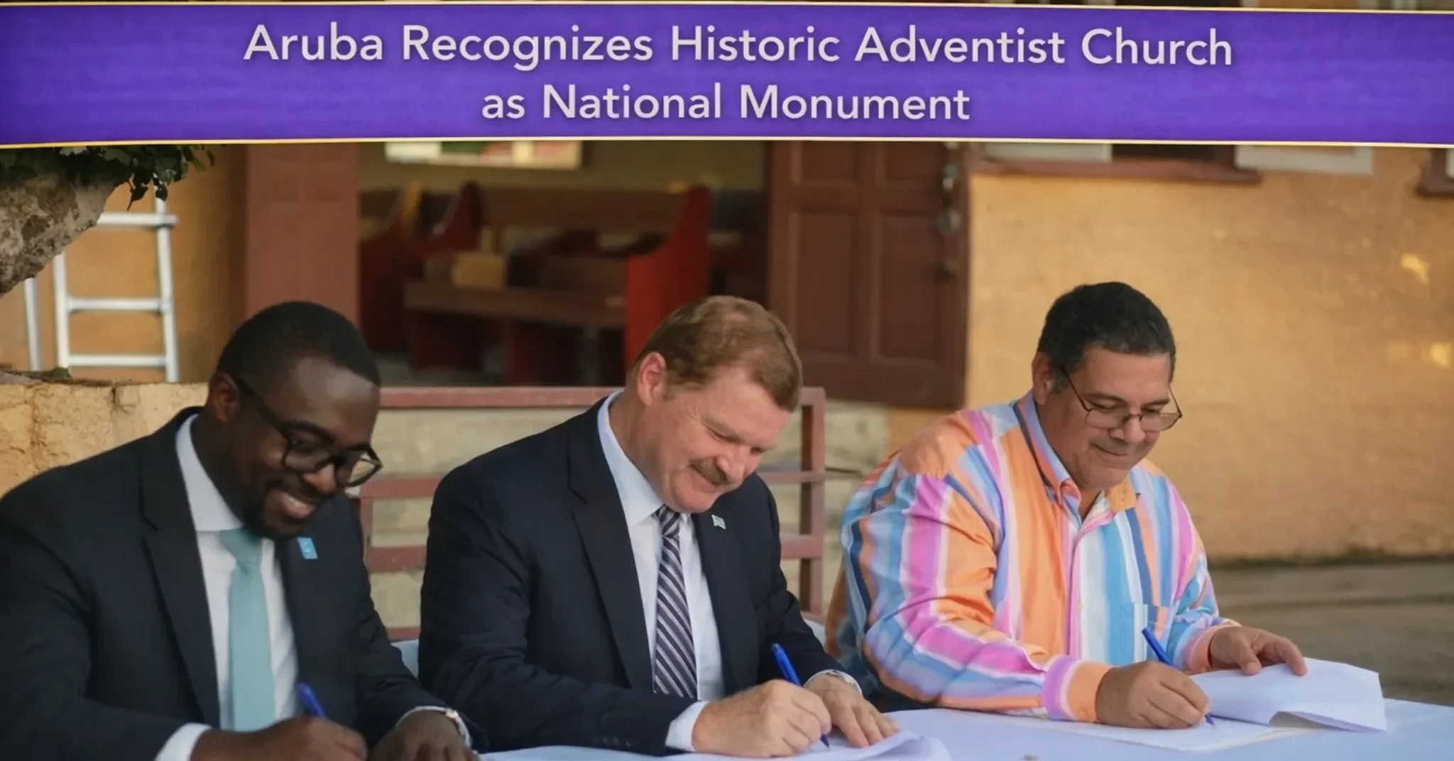 The Government of Aruba, in collaboration with Monumentenbureau, has officially recognized the building of the Seventh-day Adventist Church on Bernhardstraat as a National Monument during a special ceremony on April 14, 2026.