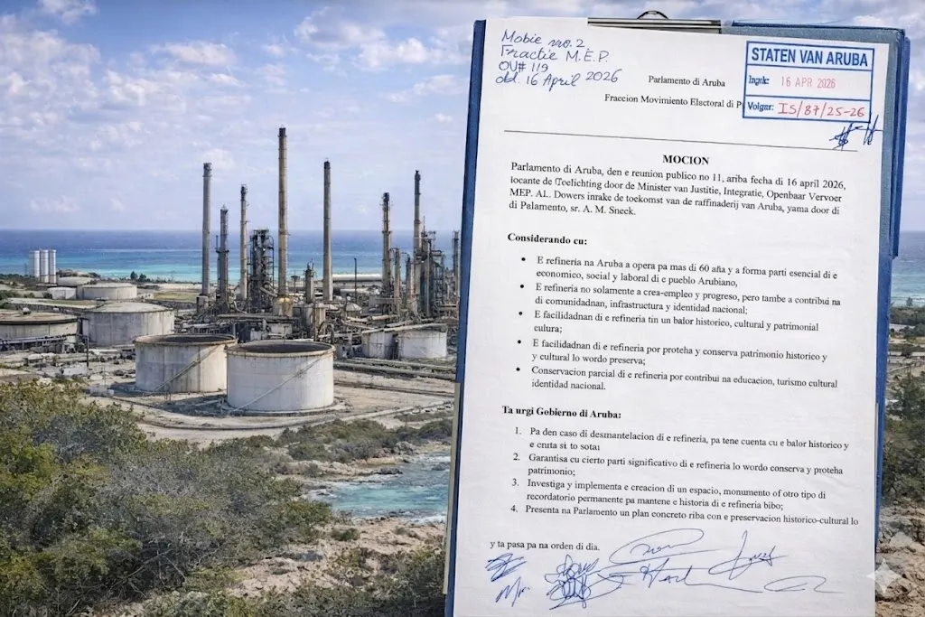 The Aruba Refinery Heritage Protection motion calls on the government to ensure that key parts of the refinery are preserved and to explore options such as creating a museum or monument.