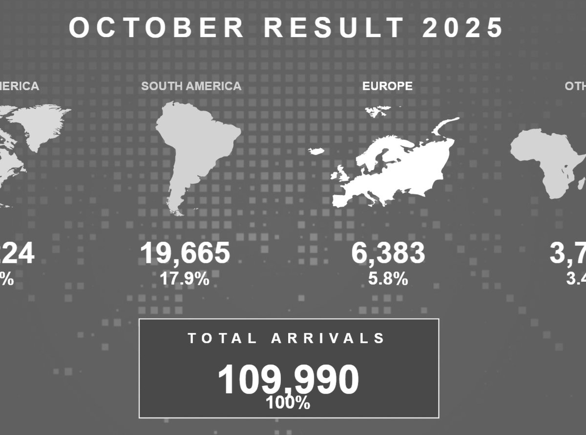 In October 2025, Aruba received 109,990 stay-over visitors, a 5.7% increase compared to October 2024, marking an additional 5,953 tourists. The most significant growth came from North America, with 80,224 visitors, followed by Latin America with 19,665 visitors (a 6.2% increase from 2024). Aruba also welcomed 6,383 visitors from Europe and 3,718 from other regions.
