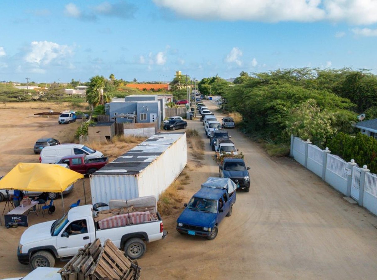 Early Saturday morning, starting around 6:00 a.m., a long line of vehicles had already formed in the Tanki Leendert area as residents arrived to take advantage of the “Baki den Bario” service, an initiative led by Prime Minister Mike Eman.