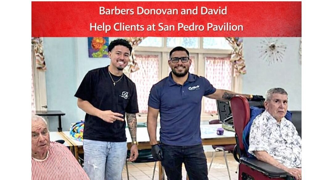• Barbers Donovan and David Help Clients at San Pedro Pavilion