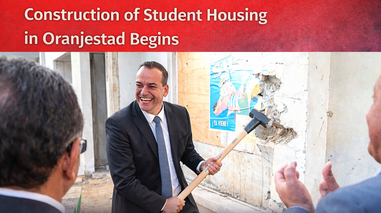 The construction of  student housing building in Oranjestad officially began this week, marking a significant step in the ongoing renovation and revitalization of the city center. The project is part of the broader Oranjestad revitalization initiative, which includes the repurposing of the old Banco Central building, which later became the Ministry of Public Affairs.