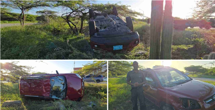 On Wednesday around 5:00 PM, a traffic accident occurred on Avenida Nelson Orlando Oduber when the driver of a KIA Sportage lost control of his vehicle and flipped over.
