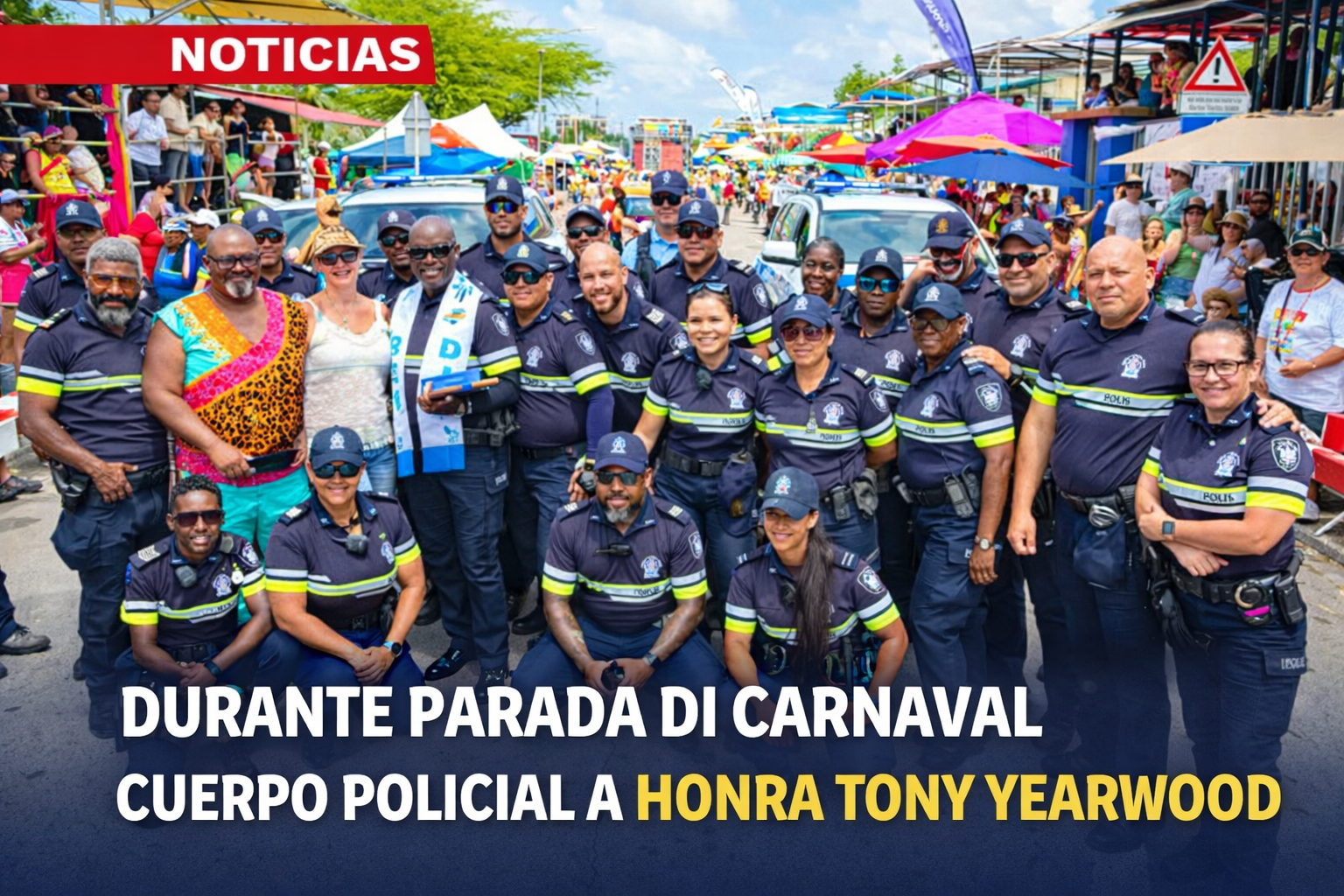 Durante Parada di Carnaval Cuerpo Policial a honra Onderinspecteur 1ste Klasse Tony Yearwood for his dedication and long-standing service to Carnival and the community.