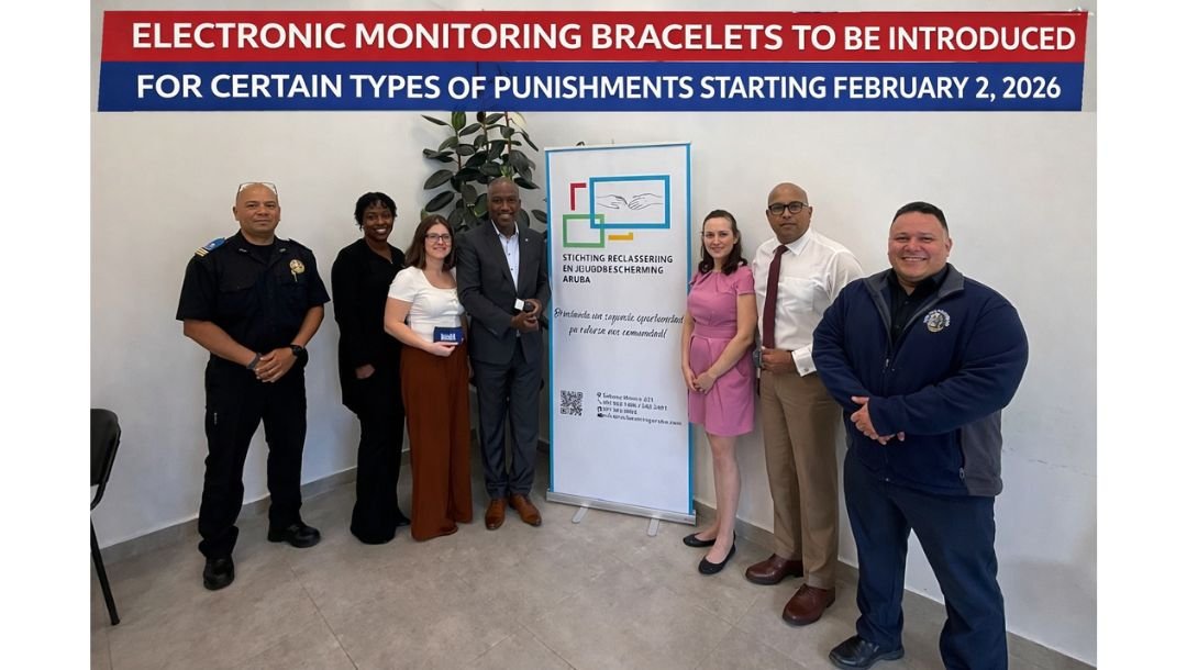 ORANJESTAD (AAN): On Tuesday afternoon, Minister of Justice Mr. Drs. Arthur Dowers received a presentation from the Stichting Reclassering en Jeugdbescherming Aruba on the use of electronic ankle bracelets for certain types of punishment. The presentation included, among other things, the topic of electronic supervision. During the meeting, a modern and innovative system that is already successfully in use in Curaçao was introduced.