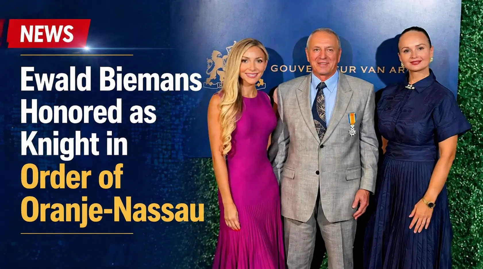 ORANJESTAD (AAN): On Friday, April 24, 2026, the Dutch Kingdom honored Ewald Biemans, founder and owner of Bucuti & Tara Beach Resort, with the royal distinction of Knight in the Order of Oranje-Nassau. The honor was bestowed during the annual ‘Lintjes Regen,’ one of the most significant moments in the King’s Day celebration throughout the Dutch Kingdom.
