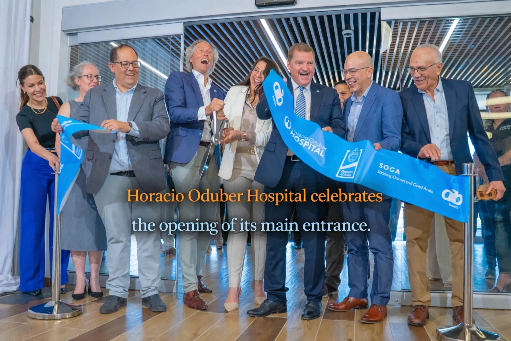 The ceremony gathered directors from HOH, the partners responsible for the expansion and renovation, including SOGA and AIB. Minister of Health, Mervin Wyatt-Ras, and Prime Minister Mike Eman delivered speeches during the event and also cut the ribbon as a symbol of the completion of this phase.