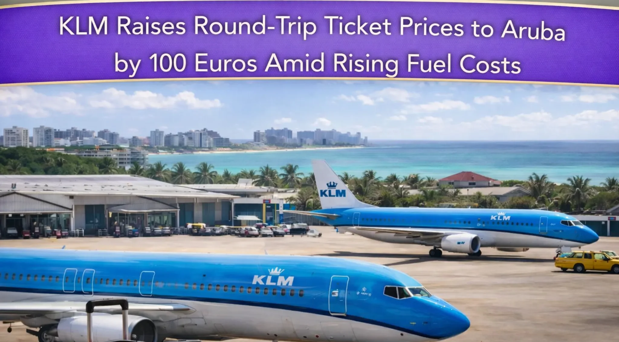 KLM Aruba ticket prices Raises for round-trip flights to Aruba and other Caribbean destinations by approximately 100 euros, an official company spokesperson confirmed this week. The fare increase takes effect immediately and applies to new bookings across the airline’s Caribbean routes.