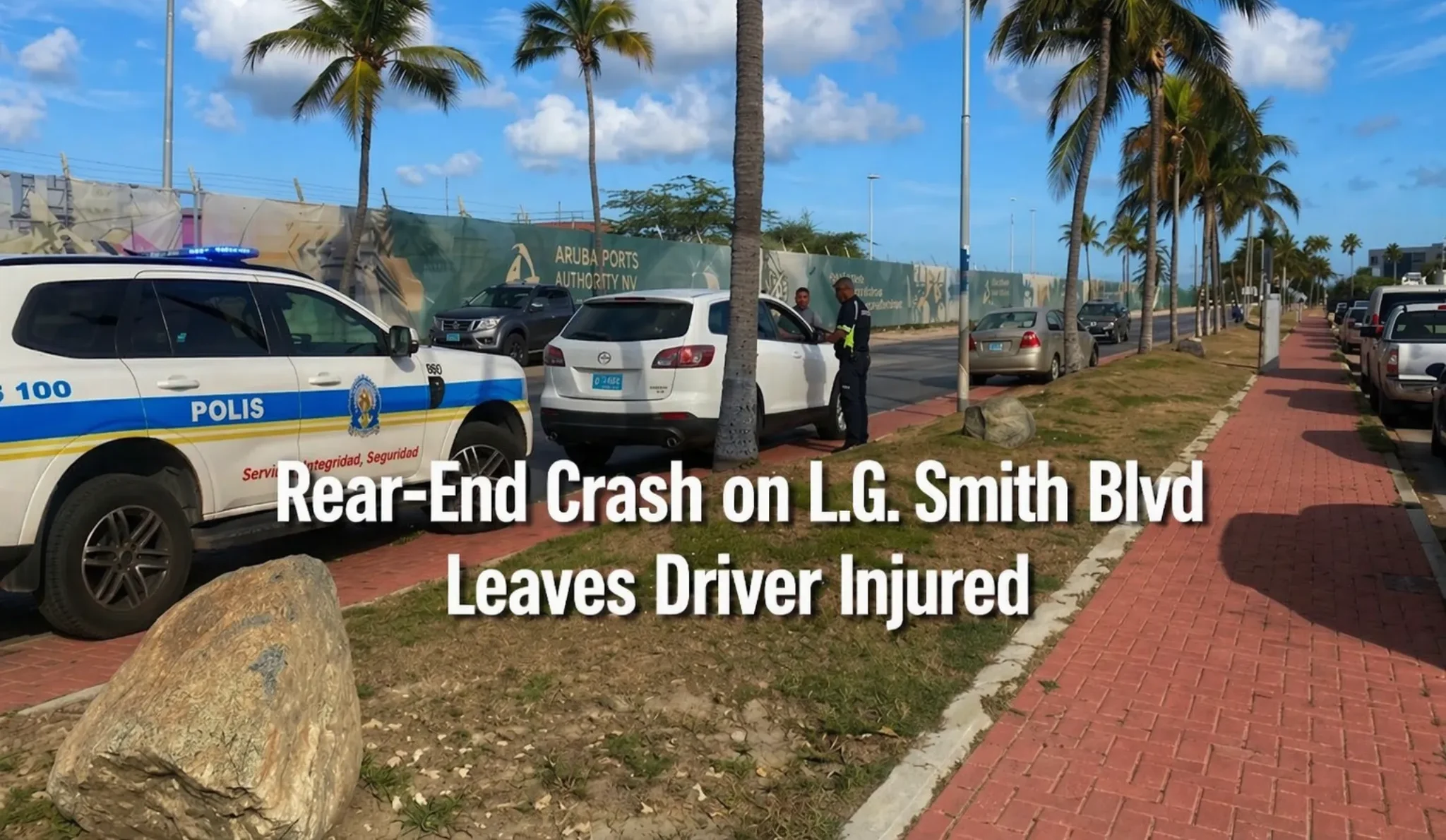 The L.G. Smith Blvd Rear‑End Accident Aruba occurred just before the Ritz area when the driver of the Mazda SUV struck the vehicle in front of him—a Chevrolet Aveo.