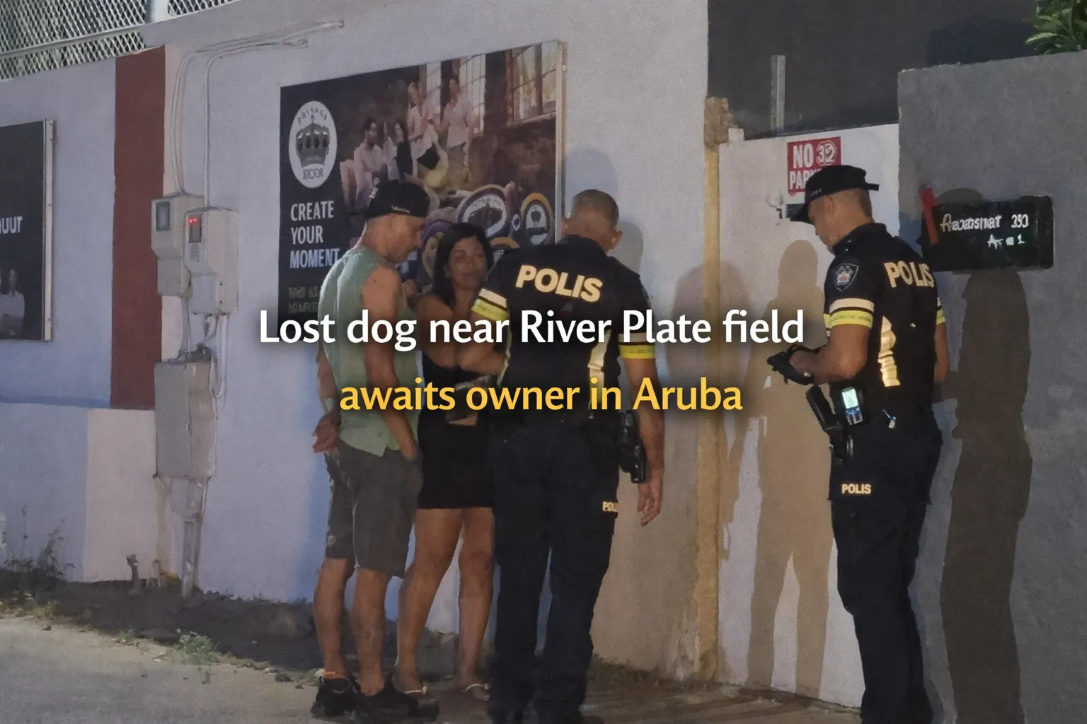 A lost dog near River Plate field in Aruba is waiting to be reunited with its owner after being seen wandering around the area on Friday.