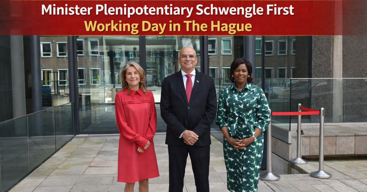 The Minister Plenipotentiary Schwengle first working day began shortly after Mildred Schwengle arrived in the Netherlands, marking the start of her official duties representing Aruba in The Hague.
