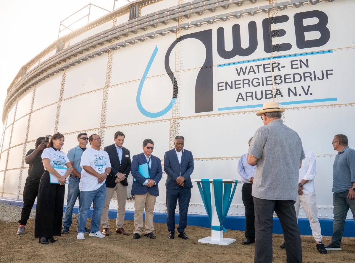 The Government of Aruba, through the Minister responsible for Energy, Mr. Drs. Arthur Dowers, together with WEB Aruba and technical partner Florida Aqua Store, has officially inaugurated the new water tank in Alto Vista—a vital installation designed to ensure a reliable, high-quality water supply for the Noord area and the island’s tourism sector.
