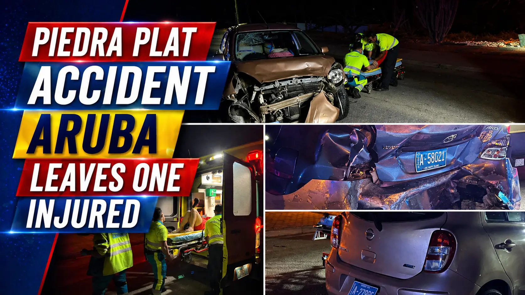 A Piedra Plat Accident Aruba late Saturday night resulted in one person being injured after a collision between two vehicles on the road leading toward Paradera.