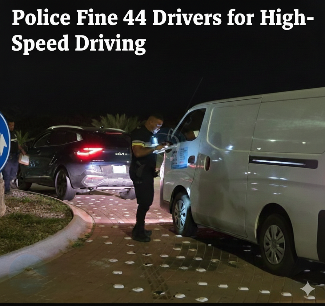 Police Fine 44 Drivers for driving at excessive speed during a traffic control operation on Wednesday night in Aruba.