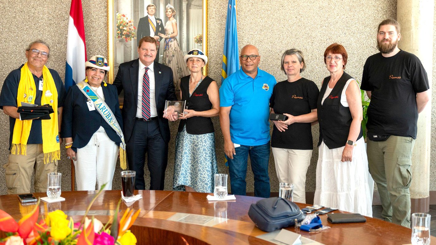 On Thursday morning, the Prime Minister of Aruba, in his role as Minister of Culture, received a delegation from the Federation of European Carnival Cities (FECC) Germany, currently visiting Aruba under an official cultural exchange program.