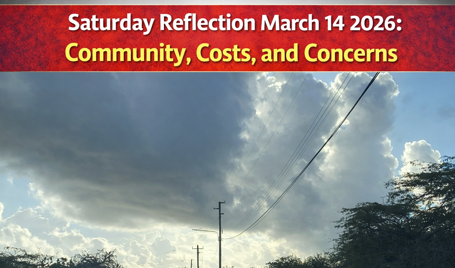 Saturday Reflection March 14 2026 highlights both the beauty of everyday life and the growing concerns many people feel about the rising cost of living in Aruba.
