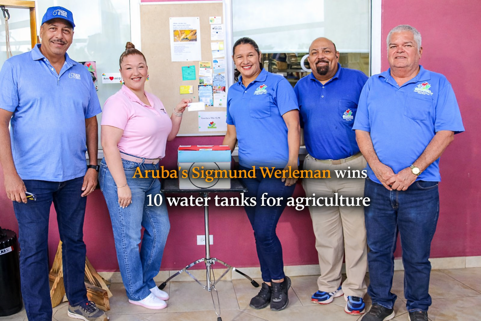 ORANJESTAD (AAN): Sigmund Werleman, a dedicated farmer from Savaneta, has won a prize of 10 white 1000-liter water tanks (IBC Tanks) from the Department of Agriculture, Livestock, and Fisheries (Santa Rosa) and WEB Aruba NV. The prize was part of a promotion to encourage local residents to visit markets, buy products and services, and participate in the March 2026 lottery. The winners were selected by drawing a ticket containing their name and other relevant information.