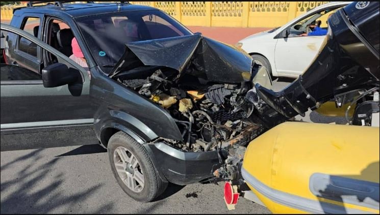 According to reports, all three vehicles were traveling south from the Noord roundabout toward Tanki Flip when the accident happened. A black Ford EcoSport first collided with a UTV, and moments later, a white Ford was unable to stop in time and struck the rear of the EcoSport.