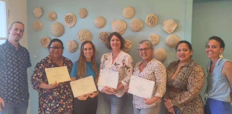The certified teachers are Brooke Barrett from School House, Susanne Spanjers-Steeghs from YNZ Montessori, Jasmin Kelly from Cacique Macuarima, and Gyseth Arends from Edu Campus. Additional educators are invited to participate in the second round of the UNESCO Ocean Literacy program, which begins in March.