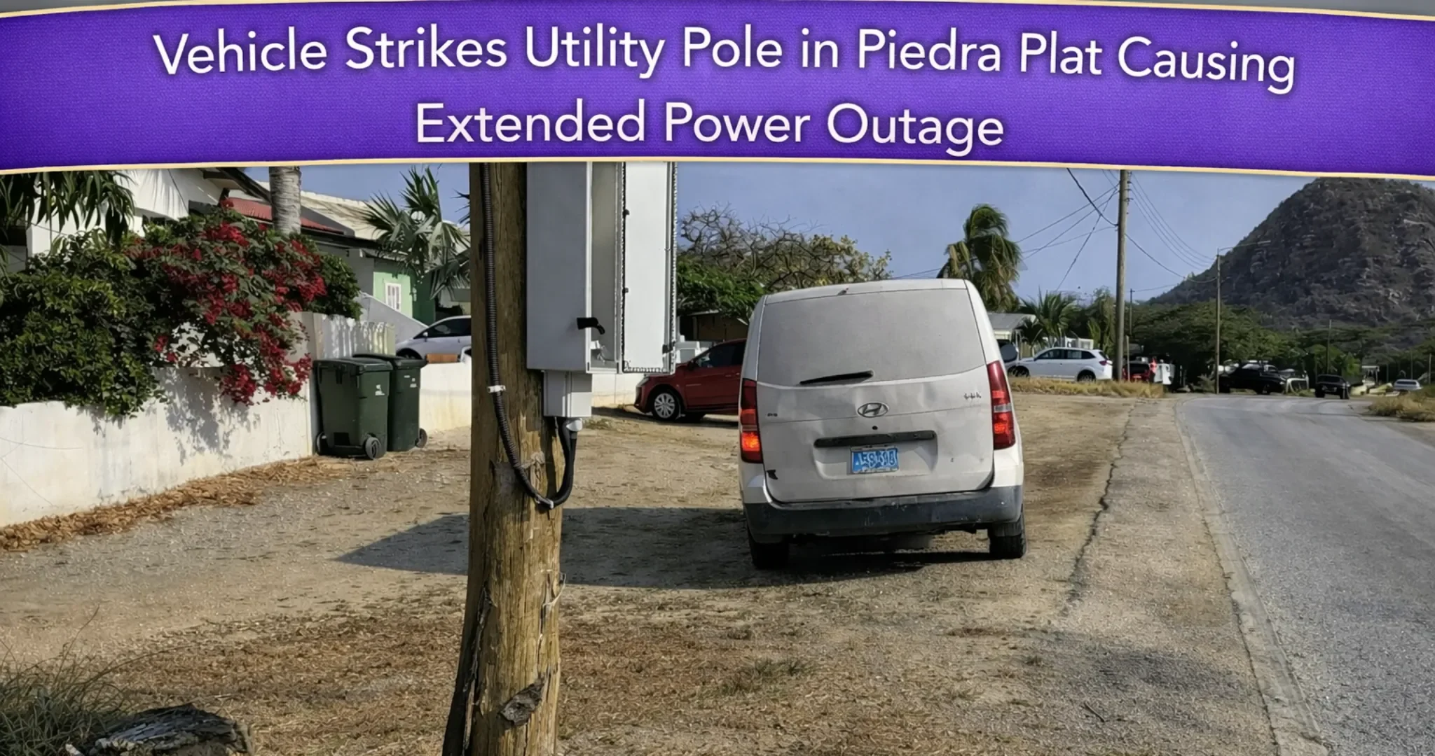 A vehicle collision with a utility pole in Piedra Plat on Wednesday afternoon knocked out electricity for several hours across multiple neighborhoods in the area. Utility company NVELMAR responded quickly to the scene and worked through the evening to restore power to all affected customers.