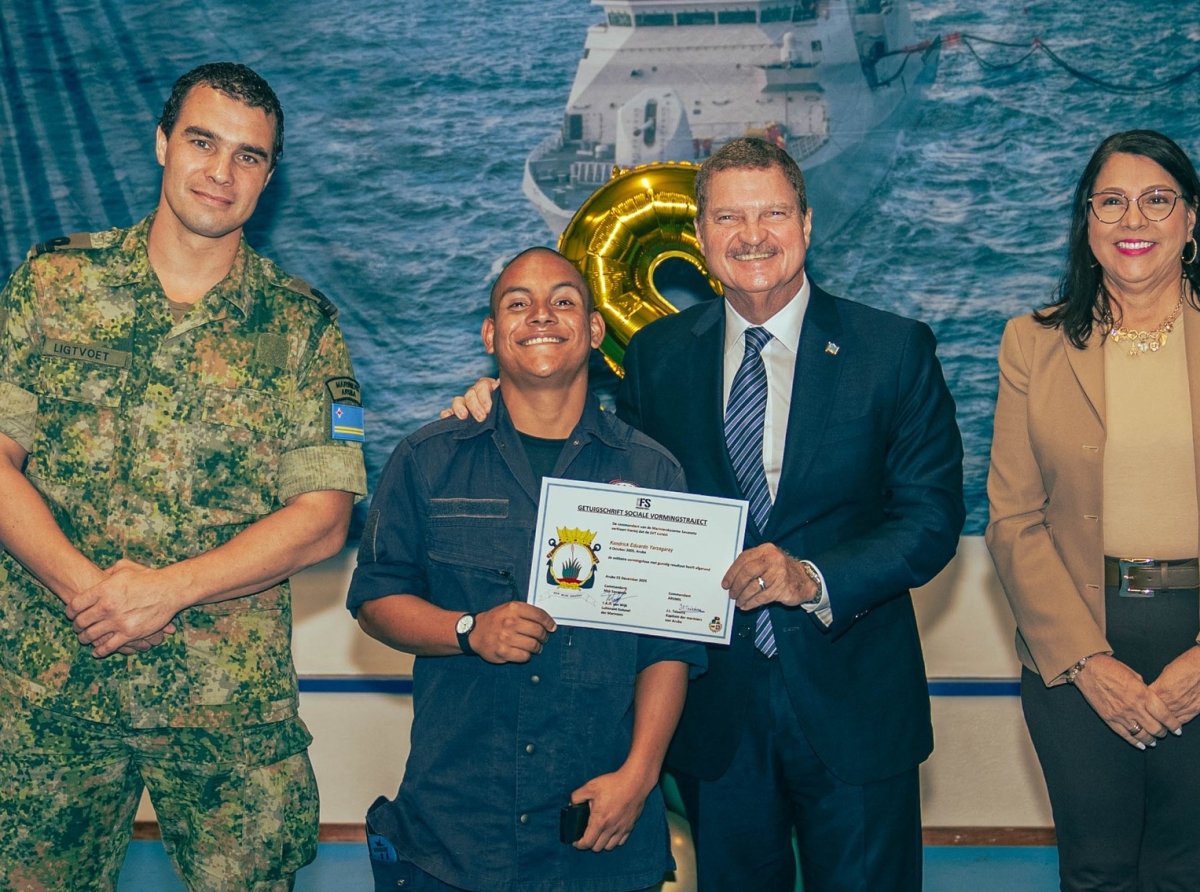 Graduate Kendrick Yarzagaray, from Tanki Leendert, also expressed pride in having completed the program. After facing difficulties in his studies, he sought an alternative and found in the Kazerne a path toward a better future.